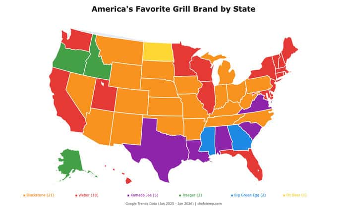 It turns out Blackstone is the US’s most-loved grill brand, with 21 states naming it their favorite.