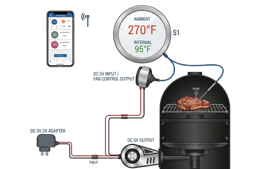 The controller repeats this on-and-off cycle for hours. This keeps your heat steady and stops the temperature from swinging up and down. Because a small sip of air often retains temperature better than a full blast, look for variable fan speeds for optimal control.how-grill-temperature-controllers-work-as-a-smoker-blower