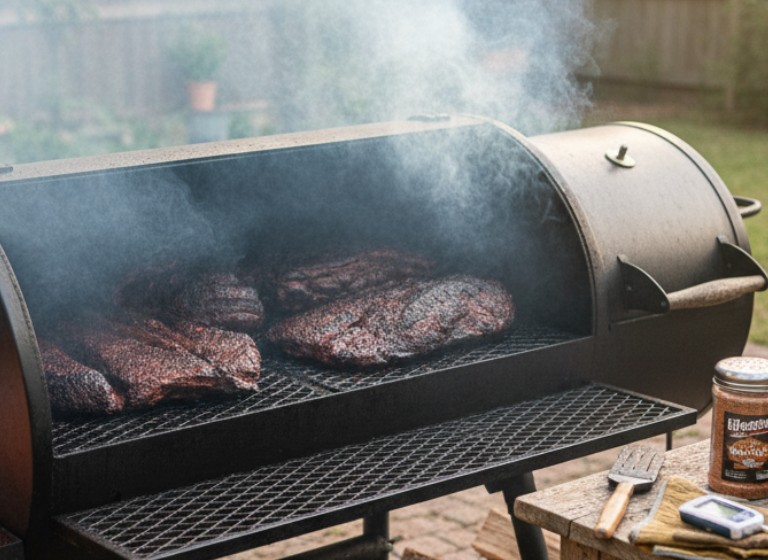• Stop adding wood after 2–3 hours (meat absorbs most smoke early).