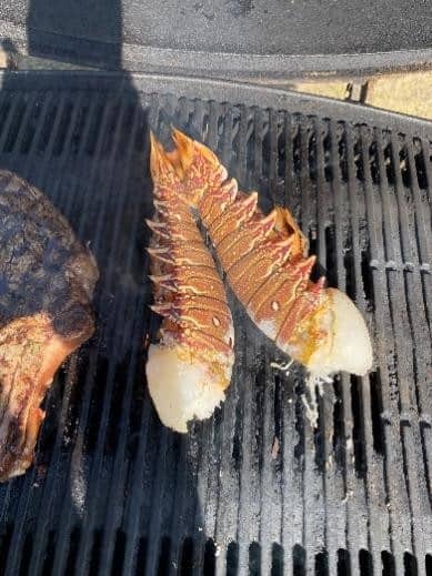 Grilling a steak and lobster is not as hard or daunting as it seems but monitoring the time and temperature are critical especially with the lobster tail. Overcooking the lobster will make it tough and tasteless. It is critical that you take temperature reading in several places and when the tail reaches between 135°F (57°C) and 140°F (60°C) it has reached the perfect temperature and needs to come off the grill. You have more flexibility with the steak, you can cook beef to any degree of doneness that you prefer, but at least cook it to 125°F (52°C) before pulling it to rest. It is important to rest steaks, from 5-20 minutes depending on how thick the steak is. The thicker the steak, the longer it needs to rest.